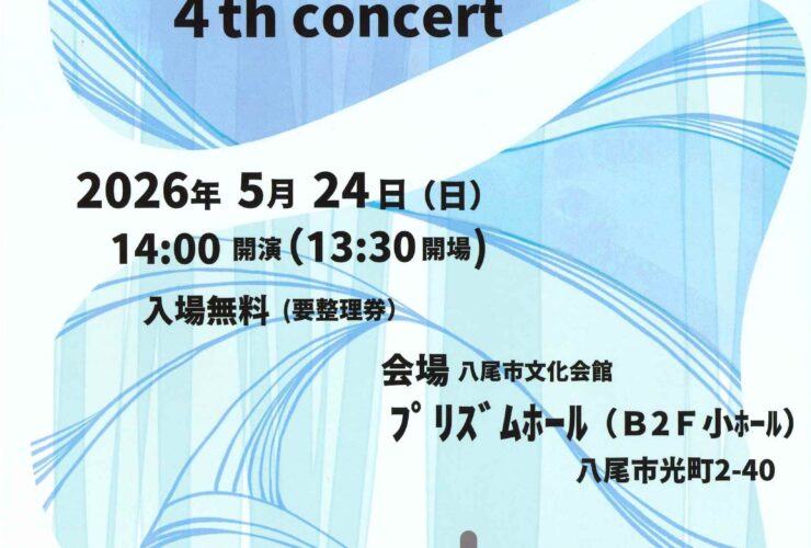 4月262026 山本高校吹奏楽第48回定期演奏会 山本高校吹奏楽第48回定期演奏会 <予定プログラム> Ⅰ部 白虎繚乱~なれし御城に残す月影~ Ⅱ部 千と千尋の神隠しメドレー、鬼滅の刃メドレーetc・・・ Ⅲ部 アルヴァマー序曲、ディープパープルメドレーetc・・・ ■日時 2026年4月26日(日) 開場13:30/開演14:00 ■会場 八尾市文化会館 プリズムホール 大ホール 入場無料・全席自由