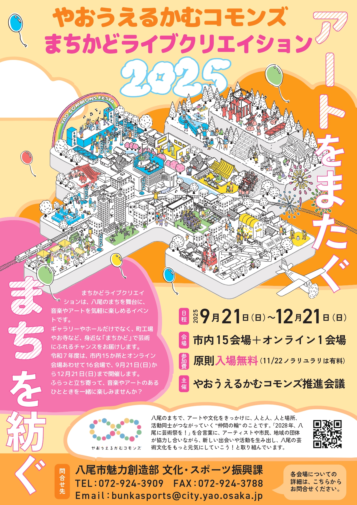 まちかどライブクリエイションは、八尾のまちを舞台に、音楽やアートを気軽に楽しめるイベントです。